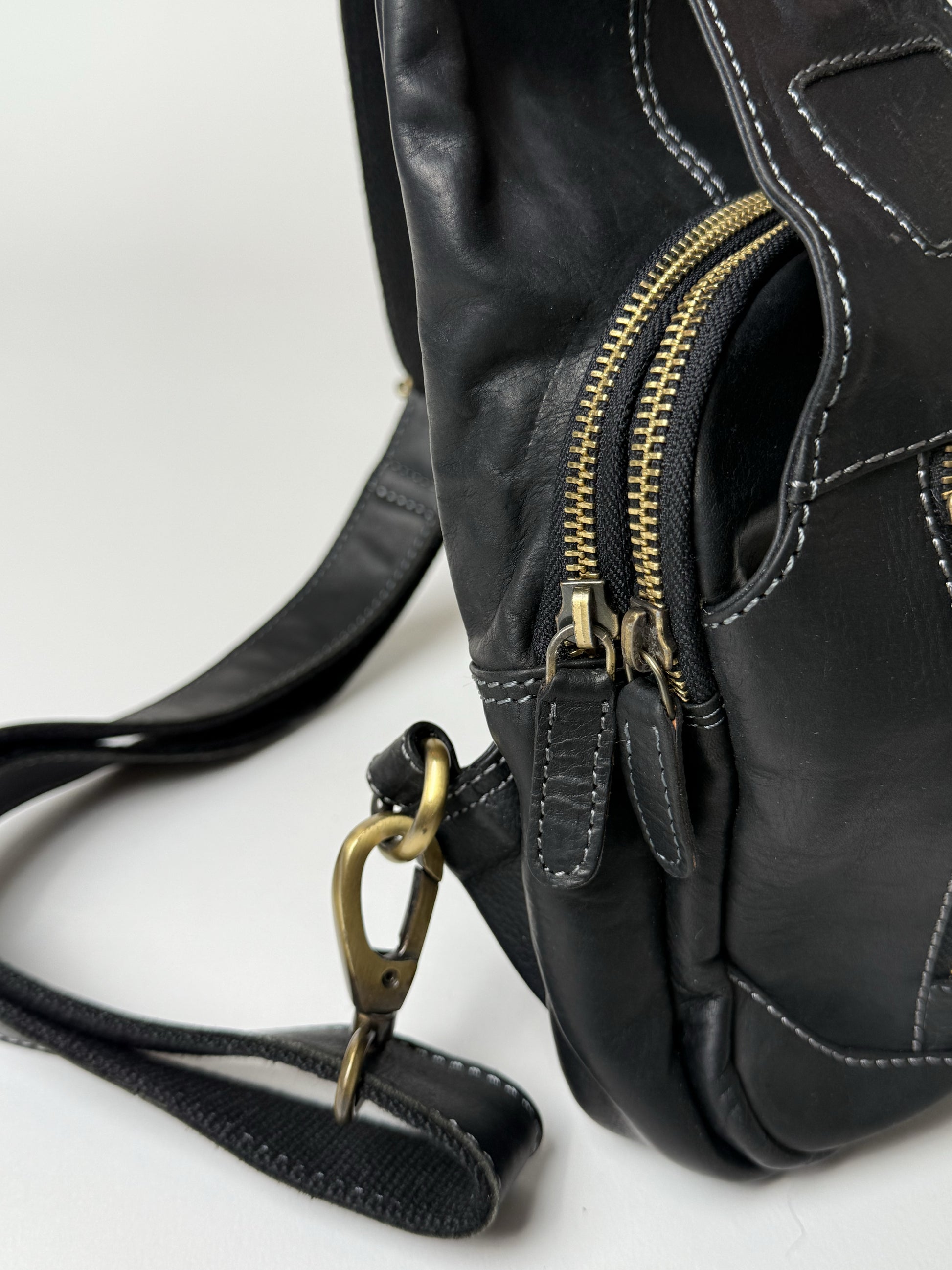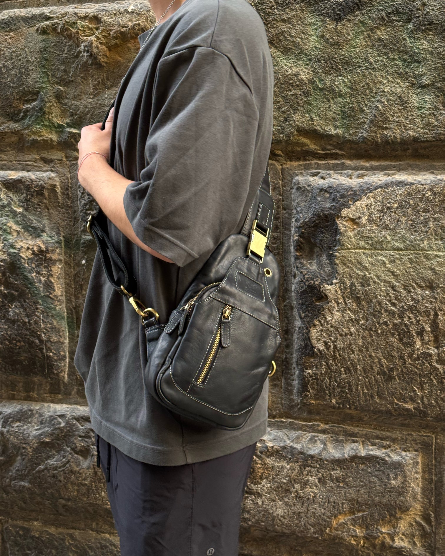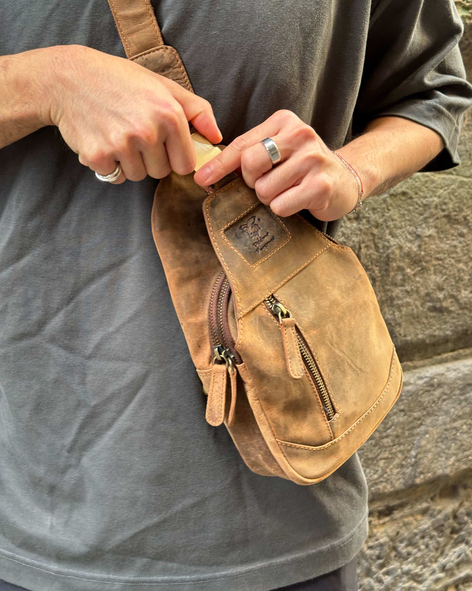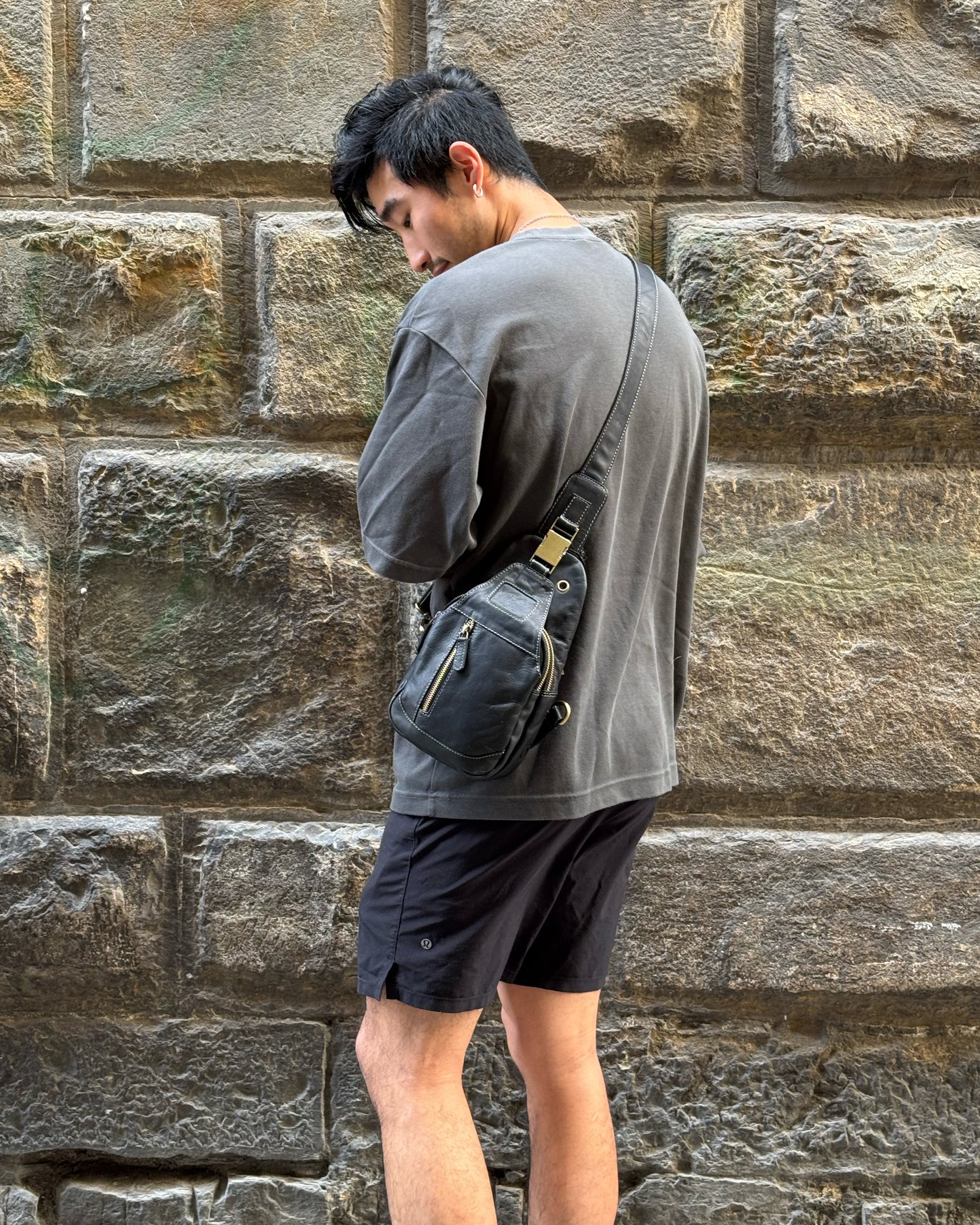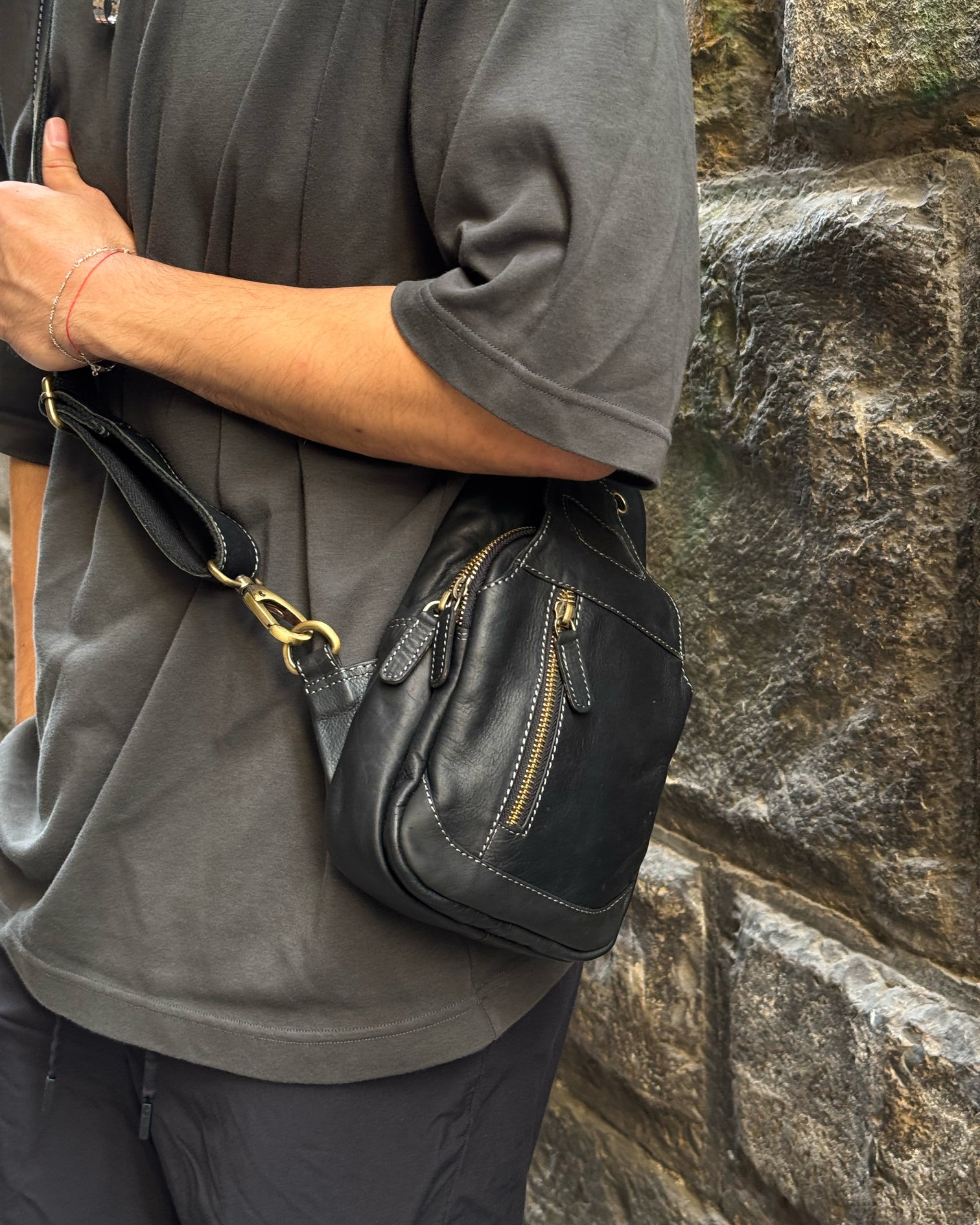 Designed with practicality in mind, this Italian leather bag features two main zippered compartments and additional zippered pockets on the front and back for effortless organization. Finished with an authentic Firenze stamp.